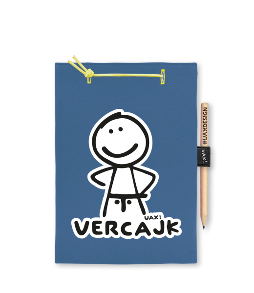 Blok A5 s vyměnitelnými papíry. Na přední straně možnost výběru z více než 300 potisků. Vyrobeno ze 100% bavlny. Výběr z 28 barev. Tiskneme ručním sítotiskem. V horní části blok A5 stažen žlutou gumičkou. 60 listů s perforací pro snadnější odtržení. Žlutá guma ve spodní části pro zajištění obalu. K bloku získáte i tužku #UAXDESIGN