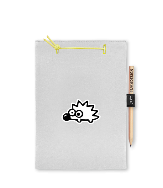 Blok A5 s vyměnitelnými papíry. Na přední straně možnost výběru z více než 300 potisků. Vyrobeno ze 100% bavlny. Výběr z 28 barev. Tiskneme ručním sítotiskem. V horní části blok A5 stažen žlutou gumičkou. 60 listů s perforací pro snadnější odtržení. Žlutá guma ve spodní části pro zajištění obalu. K bloku získáte i tužku #UAXDESIGN