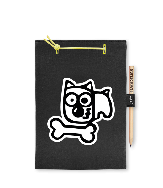 Blok A5 s vyměnitelnými papíry. Na přední straně možnost výběru z více než 300 potisků. Vyrobeno ze 100% bavlny. Výběr z 28 barev. Tiskneme ručním sítotiskem. V horní části blok A5 stažen žlutou gumičkou. 60 listů s perforací pro snadnější odtržení. Žlutá guma ve spodní části pro zajištění obalu. K bloku získáte i tužku #UAXDESIGN