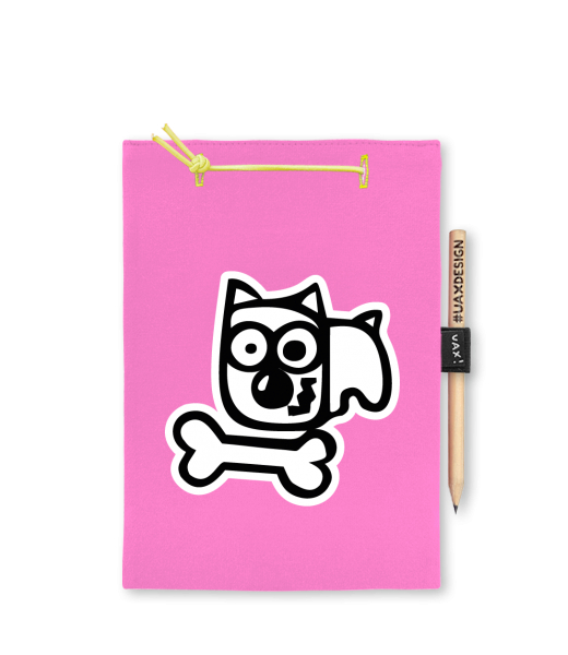 Blok A5 s vyměnitelnými papíry. Na přední straně možnost výběru z více než 300 potisků. Vyrobeno ze 100% bavlny. Výběr z 28 barev. Tiskneme ručním sítotiskem. V horní části blok A5 stažen žlutou gumičkou. 60 listů s perforací pro snadnější odtržení. Žlutá guma ve spodní části pro zajištění obalu. K bloku získáte i tužku #UAXDESIGN
