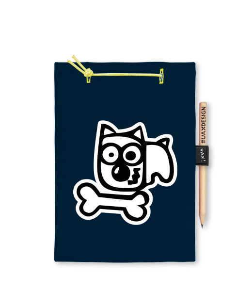Blok A5 s vyměnitelnými papíry. Na přední straně možnost výběru z více než 300 potisků. Vyrobeno ze 100% bavlny. Výběr z 28 barev. Tiskneme ručním sítotiskem. V horní části blok A5 stažen žlutou gumičkou. 60 listů s perforací pro snadnější odtržení. Žlutá guma ve spodní části pro zajištění obalu. K bloku získáte i tužku #UAXDESIGN