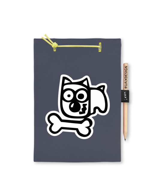 Blok A5 s vyměnitelnými papíry. Na přední straně možnost výběru z více než 300 potisků. Vyrobeno ze 100% bavlny. Výběr z 28 barev. Tiskneme ručním sítotiskem. V horní části blok A5 stažen žlutou gumičkou. 60 listů s perforací pro snadnější odtržení. Žlutá guma ve spodní části pro zajištění obalu. K bloku získáte i tužku #UAXDESIGN