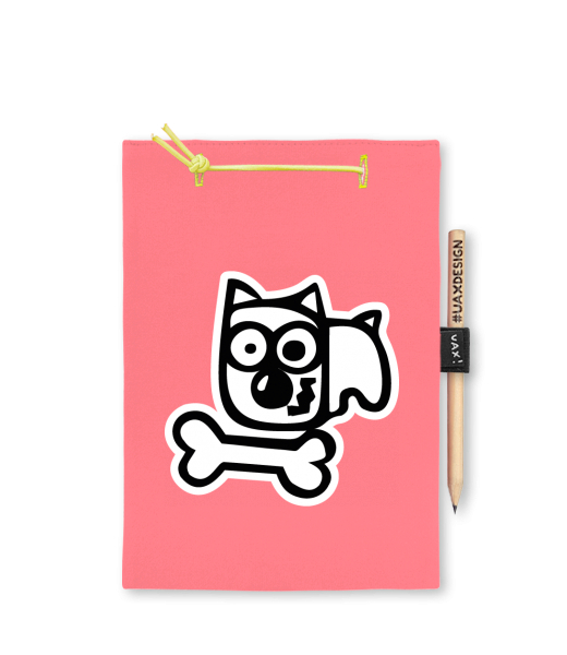 Blok A5 s vyměnitelnými papíry. Na přední straně možnost výběru z více než 300 potisků. Vyrobeno ze 100% bavlny. Výběr z 28 barev. Tiskneme ručním sítotiskem. V horní části blok A5 stažen žlutou gumičkou. 60 listů s perforací pro snadnější odtržení. Žlutá guma ve spodní části pro zajištění obalu. K bloku získáte i tužku #UAXDESIGN