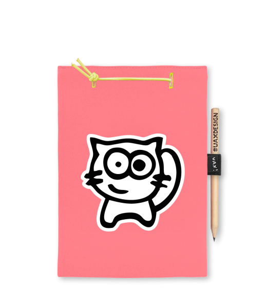 Blok A5 s vyměnitelnými papíry. Na přední straně možnost výběru z více než 300 potisků. Vyrobeno ze 100% bavlny. Výběr z 28 barev. Tiskneme ručním sítotiskem. V horní části blok A5 stažen žlutou gumičkou. 60 listů s perforací pro snadnější odtržení. Žlutá guma ve spodní části pro zajištění obalu. K bloku získáte i tužku #UAXDESIGN