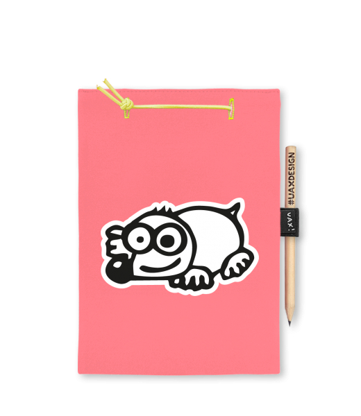 Blok A5 s vyměnitelnými papíry. Na přední straně možnost výběru z více než 300 potisků. Vyrobeno ze 100% bavlny. Výběr z 28 barev. Tiskneme ručním sítotiskem. V horní části blok A5 stažen žlutou gumičkou. 60 listů s perforací pro snadnější odtržení. Žlutá guma ve spodní části pro zajištění obalu. K bloku získáte i tužku #UAXDESIGN