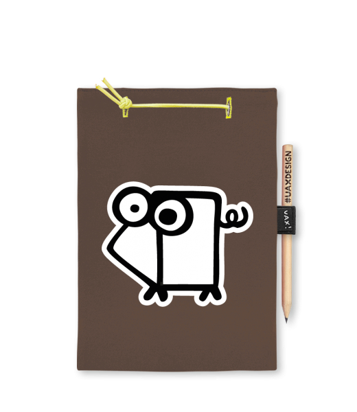 Blok A5 s vyměnitelnými papíry. Na přední straně možnost výběru z více než 300 potisků. Vyrobeno ze 100% bavlny. Výběr z 28 barev. Tiskneme ručním sítotiskem. V horní části blok A5 stažen žlutou gumičkou. 60 listů s perforací pro snadnější odtržení. Žlutá guma ve spodní části pro zajištění obalu. K bloku získáte i tužku #UAXDESIGN