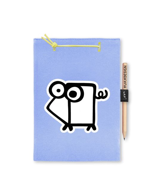 Blok A5 s vyměnitelnými papíry. Na přední straně možnost výběru z více než 300 potisků. Vyrobeno ze 100% bavlny. Výběr z 28 barev. Tiskneme ručním sítotiskem. V horní části blok A5 stažen žlutou gumičkou. 60 listů s perforací pro snadnější odtržení. Žlutá guma ve spodní části pro zajištění obalu. K bloku získáte i tužku #UAXDESIGN
