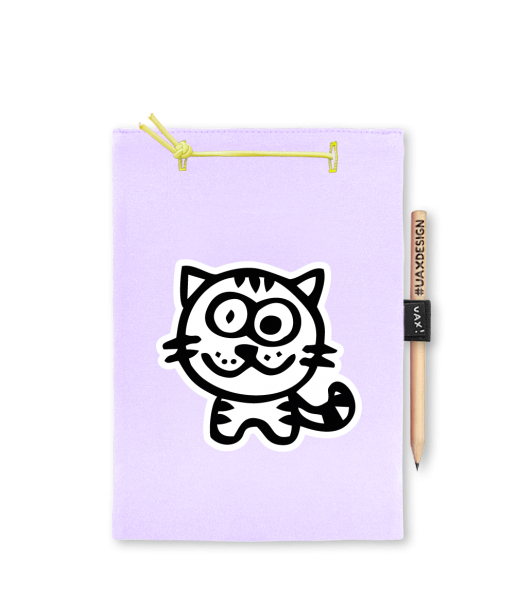 Blok A5 s vyměnitelnými papíry. Na přední straně možnost výběru z více než 300 potisků. Vyrobeno ze 100% bavlny. Výběr z 28 barev. Tiskneme ručním sítotiskem. V horní části blok A5 stažen žlutou gumičkou. 60 listů s perforací pro snadnější odtržení. Žlutá guma ve spodní části pro zajištění obalu. K bloku získáte i tužku #UAXDESIGN
