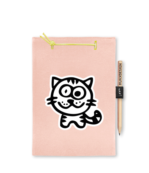 Blok A5 s vyměnitelnými papíry. Na přední straně možnost výběru z více než 300 potisků. Vyrobeno ze 100% bavlny. Výběr z 28 barev. Tiskneme ručním sítotiskem. V horní části blok A5 stažen žlutou gumičkou. 60 listů s perforací pro snadnější odtržení. Žlutá guma ve spodní části pro zajištění obalu. K bloku získáte i tužku #UAXDESIGN