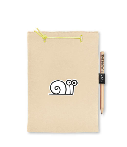 Blok A5 s vyměnitelnými papíry. Na přední straně možnost výběru z více než 300 potisků. Vyrobeno ze 100% bavlny. Výběr z 28 barev. Tiskneme ručním sítotiskem. V horní části blok A5 stažen žlutou gumičkou. 60 listů s perforací pro snadnější odtržení. Žlutá guma ve spodní části pro zajištění obalu. K bloku získáte i tužku #UAXDESIGN