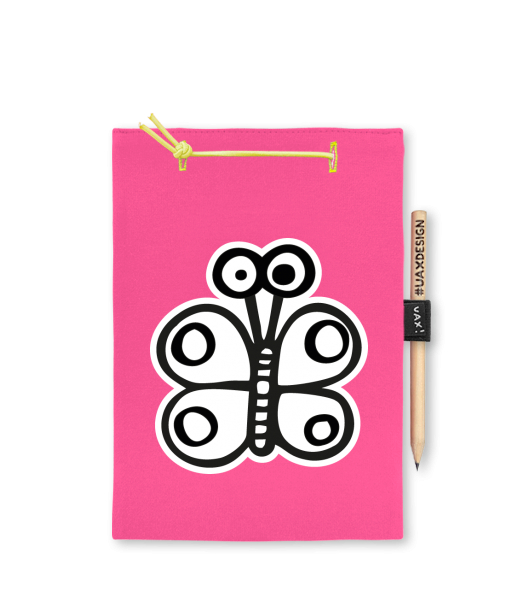 Blok A5 s vyměnitelnými papíry. Na přední straně možnost výběru z více než 300 potisků. Vyrobeno ze 100% bavlny. Výběr z 28 barev. Tiskneme ručním sítotiskem. V horní části blok A5 stažen žlutou gumičkou. 60 listů s perforací pro snadnější odtržení. Žlutá guma ve spodní části pro zajištění obalu. K bloku získáte i tužku #UAXDESIGN