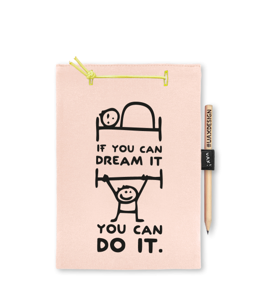 Blok A5 s vyměnitelnými papíry. Na přední straně možnost výběru z více než 300 potisků. Vyrobeno ze 100% bavlny. Výběr z 28 barev. Tiskneme ručním sítotiskem. V horní části blok A5 stažen žlutou gumičkou. 60 listů s perforací pro snadnější odtržení. Žlutá guma ve spodní části pro zajištění obalu. K bloku získáte i tužku #UAXDESIGN