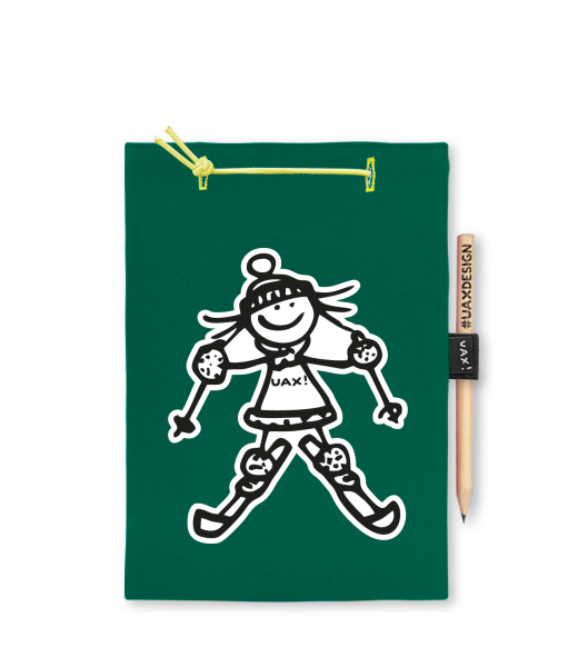 Vyrábíme udržitelné oblečení UAX! - ručně šité v Česku uaxDoplňky uaxVšechny produktyBloky a fixyBLOK A5potisk 1179 - SKIER GIRLUNIVERSITY GREEN