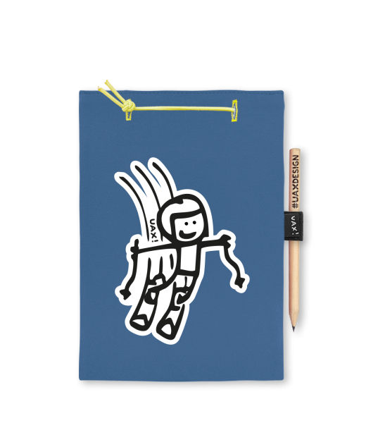 Blok A5 s vyměnitelnými papíry. Na přední straně možnost výběru z více než 300 potisků. Vyrobeno ze 100% bavlny. Výběr z 28 barev. Tiskneme ručním sítotiskem. V horní části blok A5 stažen žlutou gumičkou. 60 listů s perforací pro snadnější odtržení. Žlutá guma ve spodní části pro zajištění obalu. K bloku získáte i tužku #UAXDESIGN