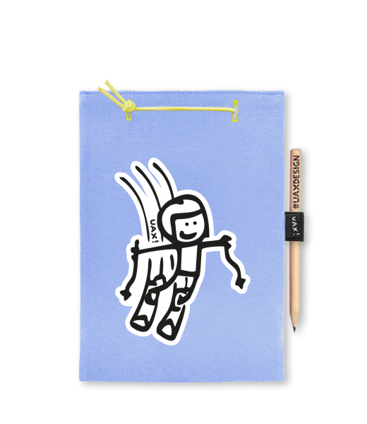 Blok A5 s vyměnitelnými papíry. Na přední straně možnost výběru z více než 300 potisků. Vyrobeno ze 100% bavlny. Výběr z 28 barev. Tiskneme ručním sítotiskem. V horní části blok A5 stažen žlutou gumičkou. 60 listů s perforací pro snadnější odtržení. Žlutá guma ve spodní části pro zajištění obalu. K bloku získáte i tužku #UAXDESIGN