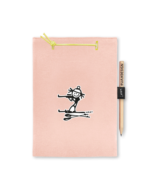 Blok A5 s vyměnitelnými papíry. Na přední straně možnost výběru z více než 300 potisků. Vyrobeno ze 100% bavlny. Výběr z 28 barev. Tiskneme ručním sítotiskem. V horní části blok A5 stažen žlutou gumičkou. 60 listů s perforací pro snadnější odtržení. Žlutá guma ve spodní části pro zajištění obalu. K bloku získáte i tužku #UAXDESIGN