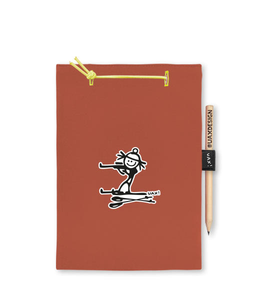 Blok A5 s vyměnitelnými papíry. Na přední straně možnost výběru z více než 300 potisků. Vyrobeno ze 100% bavlny. Výběr z 28 barev. Tiskneme ručním sítotiskem. V horní části blok A5 stažen žlutou gumičkou. 60 listů s perforací pro snadnější odtržení. Žlutá guma ve spodní části pro zajištění obalu. K bloku získáte i tužku #UAXDESIGN