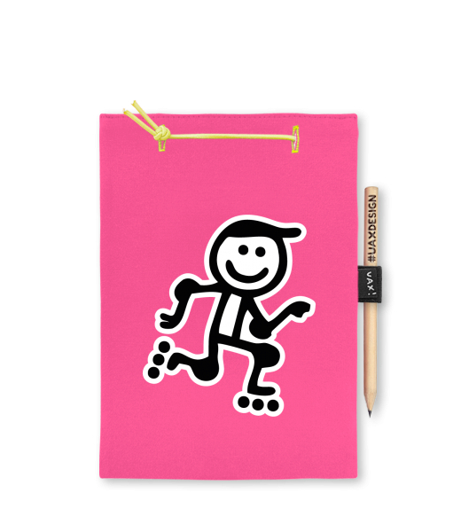 Blok A5 s vyměnitelnými papíry. Na přední straně možnost výběru z více než 300 potisků. Vyrobeno ze 100% bavlny. Výběr z 28 barev. Tiskneme ručním sítotiskem. V horní části blok A5 stažen žlutou gumičkou. 60 listů s perforací pro snadnější odtržení. Žlutá guma ve spodní části pro zajištění obalu. K bloku získáte i tužku #UAXDESIGN
