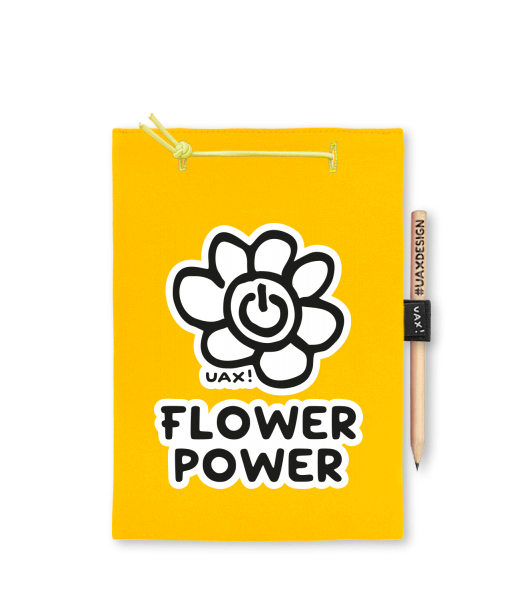 Blok A5 s vyměnitelnými papíry. Na přední straně možnost výběru z více než 300 potisků. Vyrobeno ze 100% bavlny. Výběr z 28 barev. Tiskneme ručním sítotiskem. V horní části blok A5 stažen žlutou gumičkou. 60 listů s perforací pro snadnější odtržení. Žlutá guma ve spodní části pro zajištění obalu. K bloku získáte i tužku #UAXDESIGN