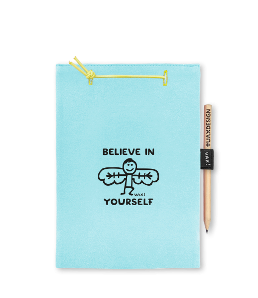 Vyrábíme udržitelné oblečení UAX! - ručně šité v Česku uaxDoplňky uaxVšechny produktyBloky a fixyBLOK A5potisk 1228 - BELIEVE IN YOURSELFPASTEL BLUE