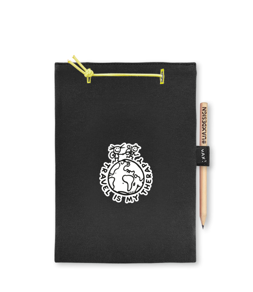 Vyrábíme udržitelné oblečení UAX! - ručně šité v Česku uaxDoplňky uaxVšechny produktyBloky a fixyBLOK A5potisk 1240 - TRAVEL IS MY THERAPYBLACK