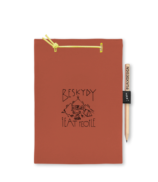 Vyrábíme udržitelné oblečení UAX! - ručně šité v Česku uaxDoplňky uaxVšechny produktyBloky a fixyBLOK A5potisk 1241 - I EAT PEOPLE BESKYDYTERRA