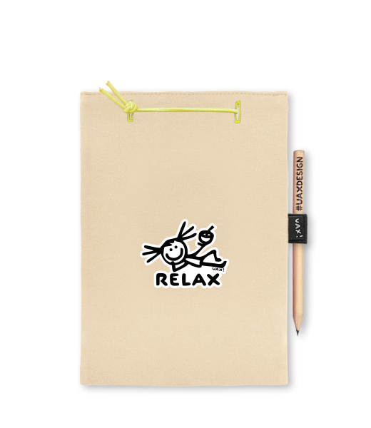 Blok A5 s vyměnitelnými papíry. Na přední straně možnost výběru z více než 300 potisků. Vyrobeno ze 100% bavlny. Výběr z 28 barev. Tiskneme ručním sítotiskem. V horní části blok A5 stažen žlutou gumičkou. 60 listů s perforací pro snadnější odtržení. Žlutá guma ve spodní části pro zajištění obalu. K bloku získáte i tužku #UAXDESIGN