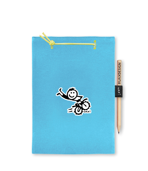 Blok A5 s vyměnitelnými papíry. Na přední straně možnost výběru z více než 300 potisků. Vyrobeno ze 100% bavlny. Výběr z 28 barev. Tiskneme ručním sítotiskem. V horní části blok A5 stažen žlutou gumičkou. 60 listů s perforací pro snadnější odtržení. Žlutá guma ve spodní části pro zajištění obalu. K bloku získáte i tužku #UAXDESIGN