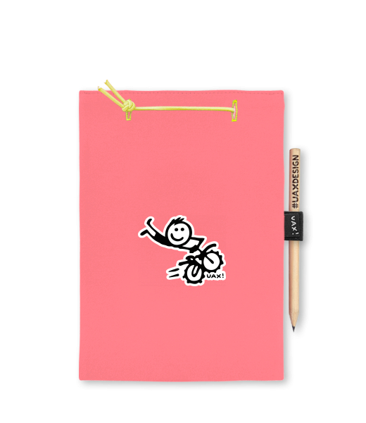 Blok A5 s vyměnitelnými papíry. Na přední straně možnost výběru z více než 300 potisků. Vyrobeno ze 100% bavlny. Výběr z 28 barev. Tiskneme ručním sítotiskem. V horní části blok A5 stažen žlutou gumičkou. 60 listů s perforací pro snadnější odtržení. Žlutá guma ve spodní části pro zajištění obalu. K bloku získáte i tužku #UAXDESIGN