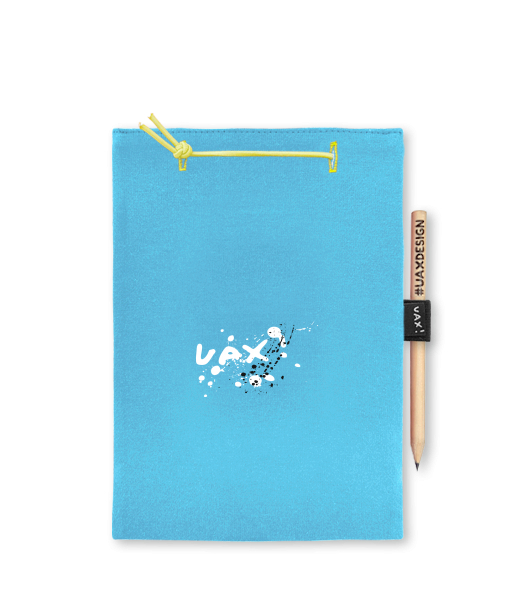 Blok A5 s vyměnitelnými papíry. Na přední straně možnost výběru z více než 300 potisků. Vyrobeno ze 100% bavlny. Výběr z 28 barev. Tiskneme ručním sítotiskem. V horní části blok A5 stažen žlutou gumičkou. 60 listů s perforací pro snadnější odtržení. Žlutá guma ve spodní části pro zajištění obalu. K bloku získáte i tužku #UAXDESIGN