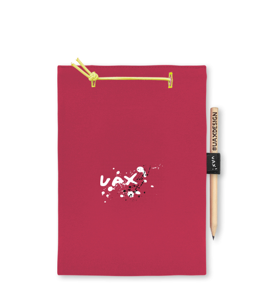Blok A5 s vyměnitelnými papíry. Na přední straně možnost výběru z více než 300 potisků. Vyrobeno ze 100% bavlny. Výběr z 28 barev. Tiskneme ručním sítotiskem. V horní části blok A5 stažen žlutou gumičkou. 60 listů s perforací pro snadnější odtržení. Žlutá guma ve spodní části pro zajištění obalu. K bloku získáte i tužku #UAXDESIGN