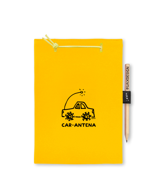 Blok A5 s vyměnitelnými papíry. Na přední straně možnost výběru z více než 300 potisků. Vyrobeno ze 100% bavlny. Výběr z 28 barev. Tiskneme ručním sítotiskem. V horní části blok A5 stažen žlutou gumičkou. 60 listů s perforací pro snadnější odtržení. Žlutá guma ve spodní části pro zajištění obalu. K bloku získáte i tužku #UAXDESIGN