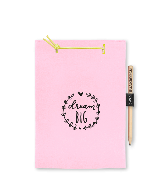 Vyrábíme udržitelné oblečení UAX! - ručně šité v Česku uaxDoplňky uaxVšechny produktyBloky a fixyBLOK A5potisk 1286 - DREAM BIGBABY PINK