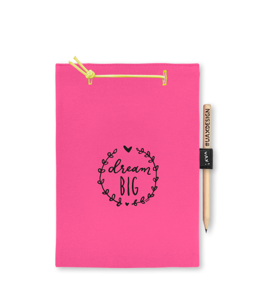 Vyrábíme udržitelné oblečení UAX! - ručně šité v Česku uaxDoplňky uaxVšechny produktyBloky a fixyBLOK A5potisk 1286 - DREAM BIGINDIAN LILA