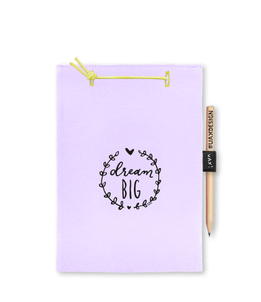 Vyrábíme udržitelné oblečení UAX! - ručně šité v Česku uaxDoplňky uaxVšechny produktyBloky a fixyBLOK A5potisk 1286 - DREAM BIGLAVENDER