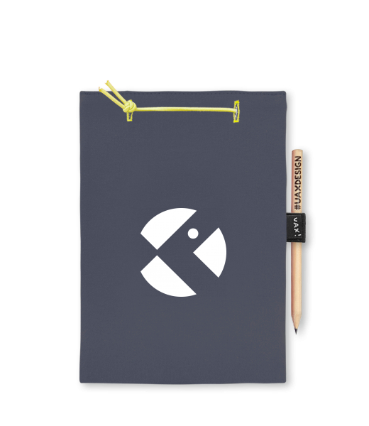 Blok A5 s vyměnitelnými papíry. Na přední straně možnost výběru z více než 300 potisků. Vyrobeno ze 100% bavlny. Výběr z 28 barev. Tiskneme ručním sítotiskem. V horní části blok A5 stažen žlutou gumičkou. 60 listů s perforací pro snadnější odtržení. Žlutá guma ve spodní části pro zajištění obalu. K bloku získáte i tužku #UAXDESIGN