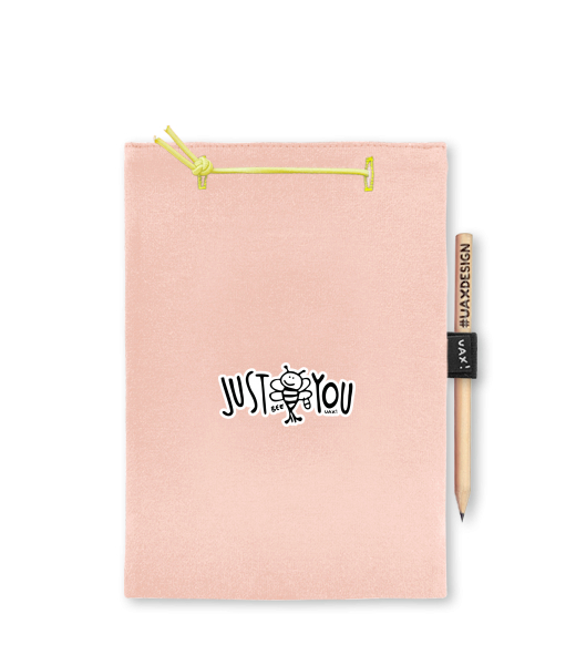 Blok A5 s vyměnitelnými papíry. Na přední straně možnost výběru z více než 300 potisků. Vyrobeno ze 100% bavlny. Výběr z 28 barev. Tiskneme ručním sítotiskem. V horní části blok A5 stažen žlutou gumičkou. 60 listů s perforací pro snadnější odtržení. Žlutá guma ve spodní části pro zajištění obalu. K bloku získáte i tužku #UAXDESIGN
