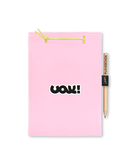 Blok A5 s vyměnitelnými papíry. Na přední straně možnost výběru z více než 300 potisků. Vyrobeno ze 100% bavlny. Výběr z 28 barev. Tiskneme ručním sítotiskem. V horní části blok A5 stažen žlutou gumičkou. 60 listů s perforací pro snadnější odtržení. Žlutá guma ve spodní části pro zajištění obalu. K bloku získáte i tužku #UAXDESIGN