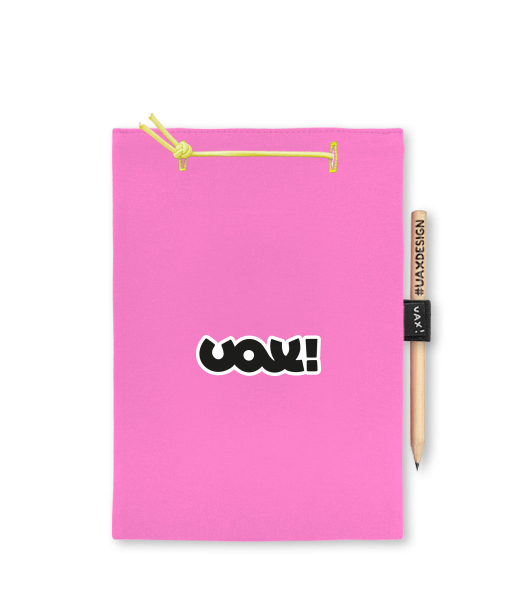 Blok A5 s vyměnitelnými papíry. Na přední straně možnost výběru z více než 300 potisků. Vyrobeno ze 100% bavlny. Výběr z 28 barev. Tiskneme ručním sítotiskem. V horní části blok A5 stažen žlutou gumičkou. 60 listů s perforací pro snadnější odtržení. Žlutá guma ve spodní části pro zajištění obalu. K bloku získáte i tužku #UAXDESIGN