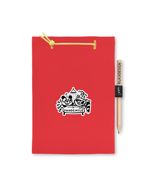 Blok A5 s vyměnitelnými papíry. Na přední straně možnost výběru z více než 300 potisků. Vyrobeno ze 100% bavlny. Výběr z 28 barev. Tiskneme ručním sítotiskem. V horní části blok A5 stažen žlutou gumičkou. 60 listů s perforací pro snadnější odtržení. Žlutá guma ve spodní části pro zajištění obalu. K bloku získáte i tužku #UAXDESIGN