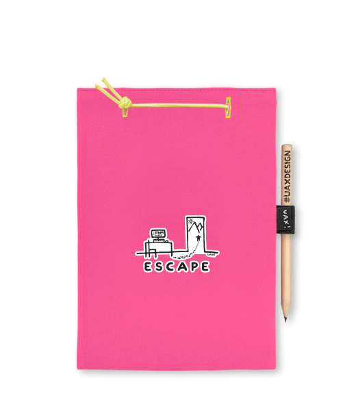 Blok A5 s vyměnitelnými papíry. Na přední straně možnost výběru z více než 300 potisků. Vyrobeno ze 100% bavlny. Výběr z 28 barev. Tiskneme ručním sítotiskem. V horní části blok A5 stažen žlutou gumičkou. 60 listů s perforací pro snadnější odtržení. Žlutá guma ve spodní části pro zajištění obalu. K bloku získáte i tužku #UAXDESIGN