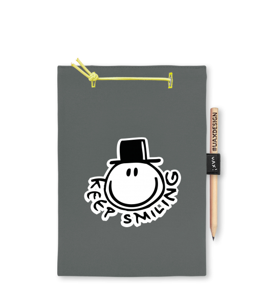 Vyrábíme udržitelné oblečení UAX! - ručně šité v Česku uaxDoplňky uaxVšechny produktyBloky a fixyBLOK A5potisk 517 - KEEP SMILINGDARK GRAY
