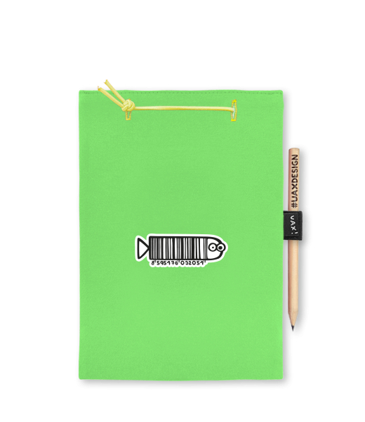 Blok A5 s vyměnitelnými papíry. Na přední straně možnost výběru z více než 300 potisků. Vyrobeno ze 100% bavlny. Výběr z 28 barev. Tiskneme ručním sítotiskem. V horní části blok A5 stažen žlutou gumičkou. 60 listů s perforací pro snadnější odtržení. Žlutá guma ve spodní části pro zajištění obalu. K bloku získáte i tužku #UAXDESIGN