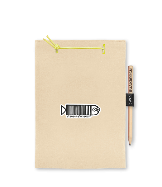 Blok A5 s vyměnitelnými papíry. Na přední straně možnost výběru z více než 300 potisků. Vyrobeno ze 100% bavlny. Výběr z 28 barev. Tiskneme ručním sítotiskem. V horní části blok A5 stažen žlutou gumičkou. 60 listů s perforací pro snadnější odtržení. Žlutá guma ve spodní části pro zajištění obalu. K bloku získáte i tužku #UAXDESIGN