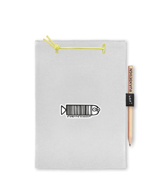 Blok A5 s vyměnitelnými papíry. Na přední straně možnost výběru z více než 300 potisků. Vyrobeno ze 100% bavlny. Výběr z 28 barev. Tiskneme ručním sítotiskem. V horní části blok A5 stažen žlutou gumičkou. 60 listů s perforací pro snadnější odtržení. Žlutá guma ve spodní části pro zajištění obalu. K bloku získáte i tužku #UAXDESIGN