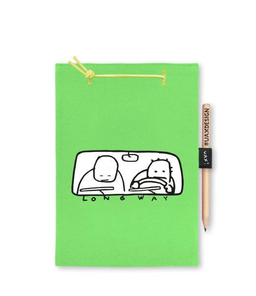 Blok A5 s vyměnitelnými papíry. Na přední straně možnost výběru z více než 300 potisků. Vyrobeno ze 100% bavlny. Výběr z 28 barev. Tiskneme ručním sítotiskem. V horní části blok A5 stažen žlutou gumičkou. 60 listů s perforací pro snadnější odtržení. Žlutá guma ve spodní části pro zajištění obalu. K bloku získáte i tužku #UAXDESIGN