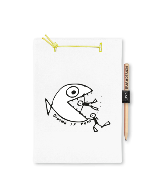 Blok A4 s vyměnitelnými papíry. Na přední straně možnost výběru z více než 300 potisků. Vyrobeno ze 100% bavlny. Výběr z 28 barev. Tiskneme ručním sítotiskem. V horní části blok A4 stažen žlutou gumičkou. 60 listů s perforací pro snadnější odtržení. Žlutá guma ve spodní části pro zajištění obalu. K bloku získáte i tužku #UAXDESIGN