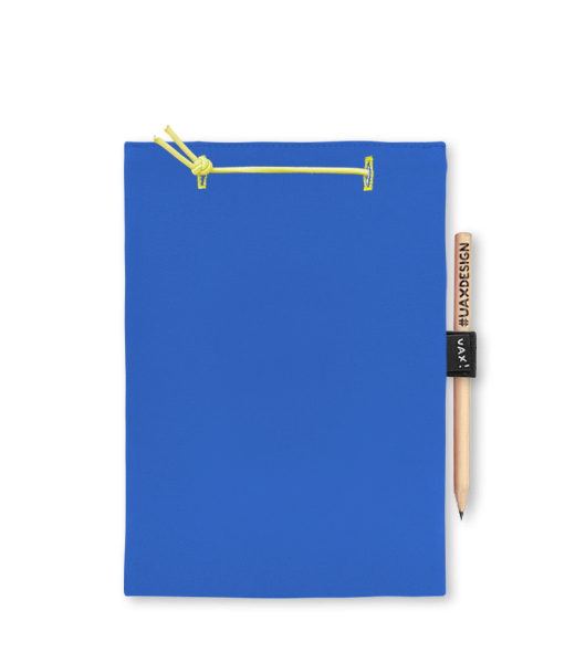 Blok A4 s vyměnitelnými papíry. Na přední straně možnost výběru z více než 300 potisků. Vyrobeno ze 100% bavlny. Výběr z 28 barev. Tiskneme ručním sítotiskem. V horní části blok A4 stažen žlutou gumičkou. 60 listů s perforací pro snadnější odtržení. Žlutá guma ve spodní části pro zajištění obalu. K bloku získáte i tužku #UAXDESIGN