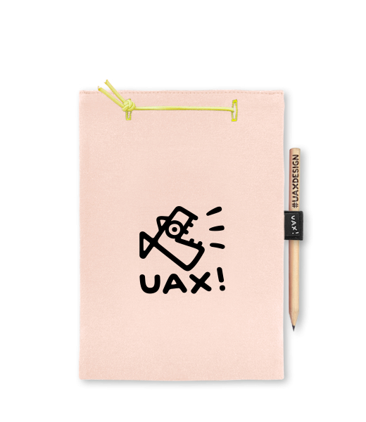 Blok A5 s vyměnitelnými papíry. Na přední straně možnost výběru z více než 300 potisků. Vyrobeno ze 100% bavlny. Výběr z 28 barev. Tiskneme ručním sítotiskem. V horní části blok A5 stažen žlutou gumičkou. 60 listů s perforací pro snadnější odtržení. Žlutá guma ve spodní části pro zajištění obalu. K bloku získáte i tužku #UAXDESIGN