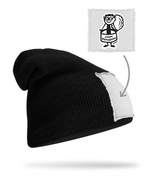 Pletená čepice BEANIE unisex s potiskem 1352 JSEM KONZERVA MEN v barvě BLACK/WHITE